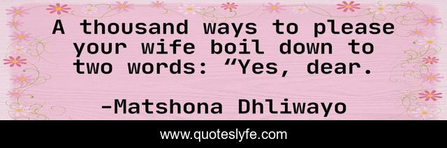 "Matshona Dhliwayo Quotes." Quoteslyfe.com, 2025. Tue. 09 Dec. 2025. <https://www.quoteslyfe.com/quote/A-thousand-ways-to-please-your-wife-49667>.
