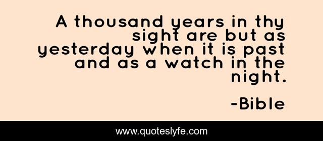 This page presents the quote "A thousand years in thy sight are but as yesterday when it is past and as a watch in the night.". Author of this quote is Bible. .