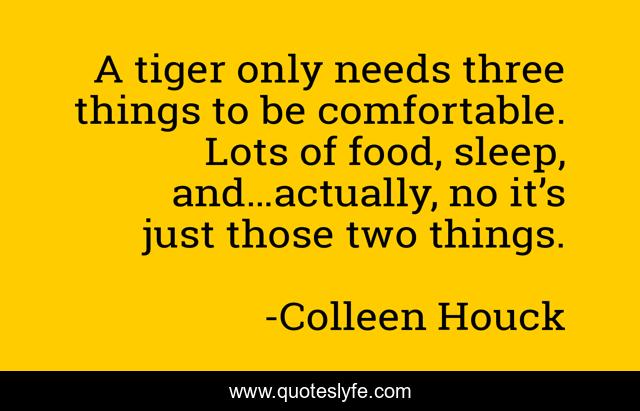 This page presents the quote "A tiger only needs three things to be comfortable. Lots of food, sleep, and…actually, no it’s just those two things.". Author of this quote is Colleen Houck. This quote is about comfort, humor,.