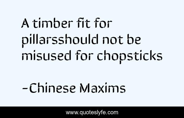 This page presents the quote "A timber fit for pillarsshould not be misused for chopsticks". Author of this quote is Chinese Maxims. This quote is about enthusiasm, inspirational, inspirational-living,.