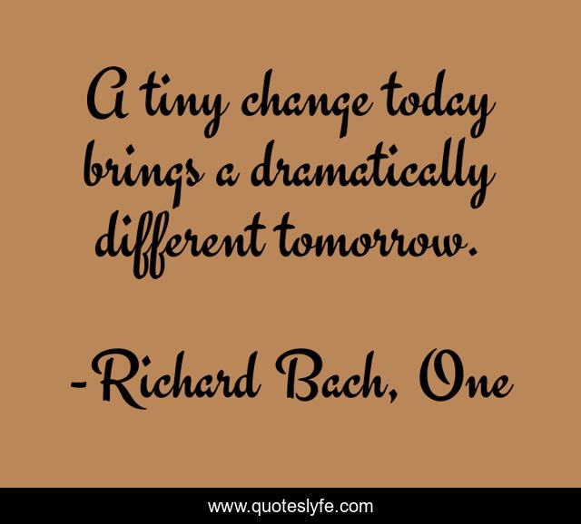 This page presents the quote "A tiny change today brings a dramatically different tomorrow.". Author of this quote is Richard Bach, One. This quote is about enthusiasm, change, inspirational,.