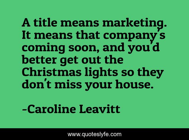 This page presents the quote "A title means marketing. It means that company's coming soon, and you'd better get out the Christmas lights so they don't miss your house.". Author of this quote is Caroline Leavitt. This quote is about better, marketing, company,.