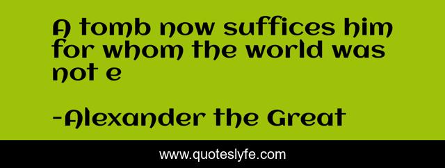 This page presents the quote "A tomb now suffices him for whom the world was not e". Author of this quote is Alexander the Great. This quote is about death, alexander-the-great, enough, world, tomb, epitaph, alexander,.