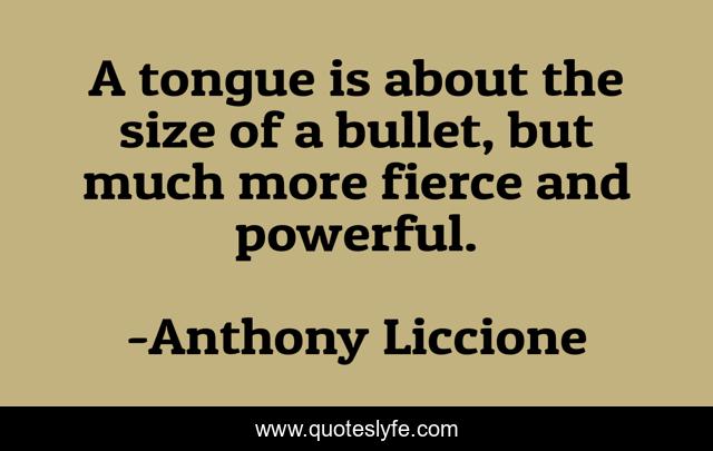This page presents the quote "A tongue is about the size of a bullet, but much more fierce and powerful.". Author of this quote is Anthony Liccione. This quote is about tongue, destructive, powerful, words,.