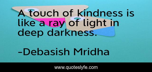 This page presents the quote "A touch of kindness is like a ray of light in deep darkness.". Author of this quote is Debasish Mridha. This quote is about miraboli, oscar-wilde, philosophy, debasish-mridha, ray-of-light, deep-darkness, quotes, gandhi, inspirational,.