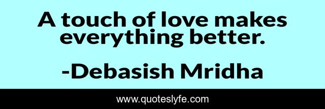 "Debasish Mridha Quotes." Quoteslyfe.com, 2025. Mon. 08 Dec. 2025. <https://www.quoteslyfe.com/quote/A-touch-of-love-makes-everything-better-135641>.