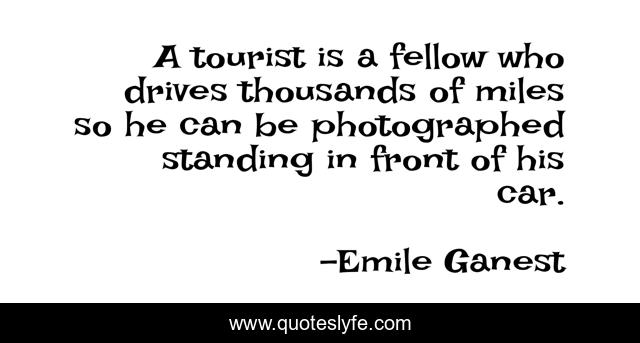 This page presents the quote "A tourist is a fellow who drives thousands of miles so he can be photographed standing in front of his car.". Author of this quote is Emile Ganest. This quote is about travel, cities,.