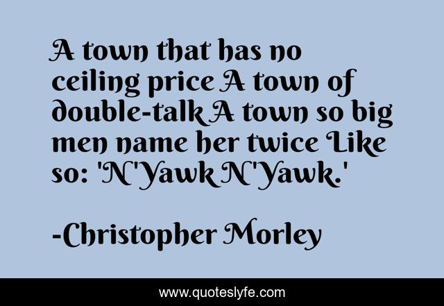 This page presents the quote "A town that has no ceiling price A town of double-talk A town so big men name her twice Like so: 'N'Yawk N'Yawk.'". Author of this quote is Christopher Morley. This quote is about america, americans,.