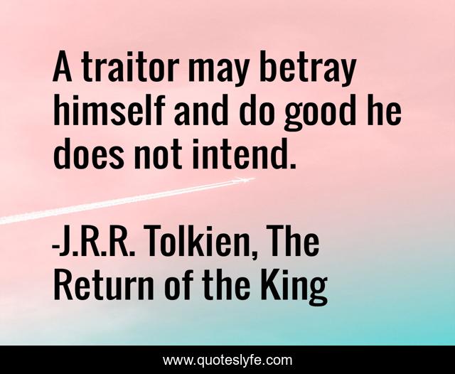 This page presents the quote "A traitor may betray himself and do good he does not intend.". Author of this quote is J.R.R. Tolkien, The Return of the King. This quote is about intention, betrayal, wisdom,.