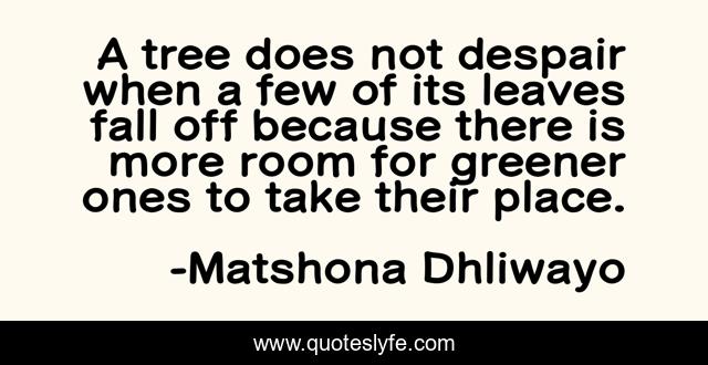 "Matshona Dhliwayo Quotes." Quoteslyfe.com, 2025. Fri. 05 Dec. 2025. <https://www.quoteslyfe.com/quote/A-tree-does-not-despair-when-a-121027>.