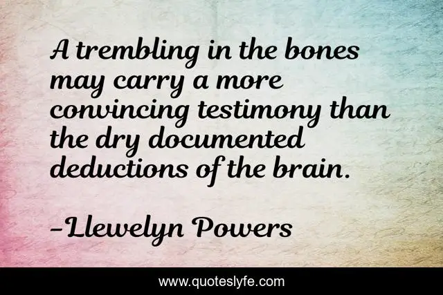 This page presents the quote "A trembling in the bones may carry a more convincing testimony than the dry documented deductions of the brain.". Author of this quote is Llewelyn Powers. .