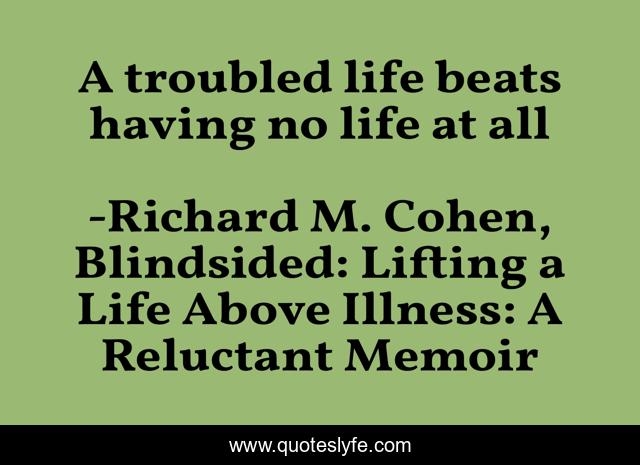 "Richard M. Cohen, Blindsided: Lifting a Life Above Illness: A Reluctant Memoir Quotes." Quoteslyfe.com, 2025. Fri. 05 Dec. 2025. <https://www.quoteslyfe.com/quote/A-troubled-life-beats-having-no-life-143825>.