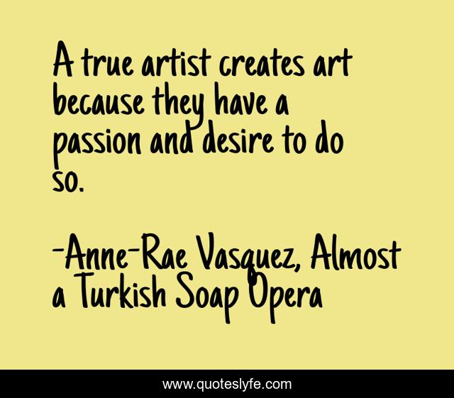 This page presents the quote "A true artist creates art because they have a passion and desire to do so.". Author of this quote is Anne-Rae Vasquez, Almost a Turkish Soap Opera. This quote is about quote, anne-rae-vasquez, artist,.