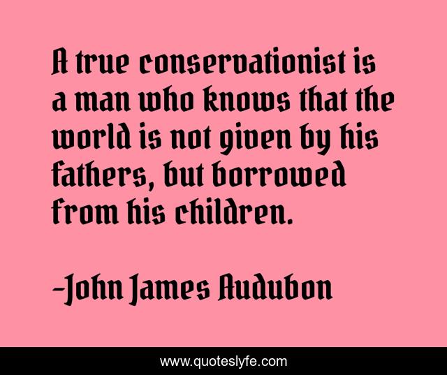 This page presents the quote "A true conservationist is a man who knows that the world is not given by his fathers, but borrowed from his children.". Author of this quote is John James Audubon. This quote is about science, land, conservationist, nature,.