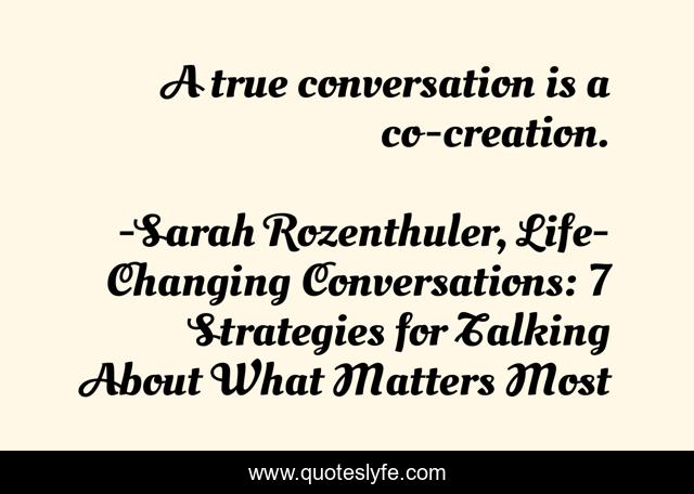 "Sarah Rozenthuler, Life-Changing Conversations: 7 Strategies for Talking About What Matters Most Quotes." Quoteslyfe.com, 2025. Fri. 05 Dec. 2025. <https://www.quoteslyfe.com/quote/A-true-conversation-is-a-co-creation-108304>.