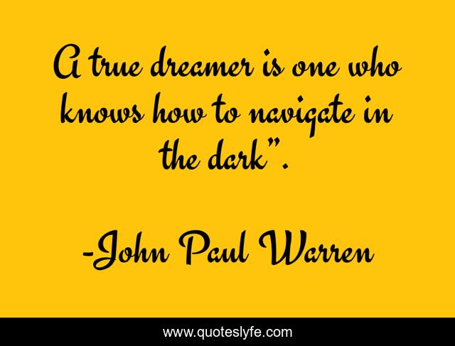 This page presents the quote "A true dreamer is one who knows how to navigate in the dark”.". Author of this quote is John Paul Warren. This quote is about church, speakers, sozo, leaders, conferences, john-paul, positive, motivational, voice-of-the-nations,.