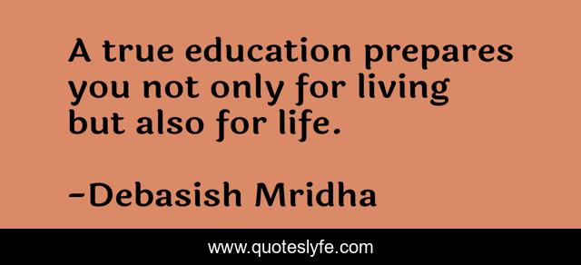 This page presents the quote "A true education prepares you not only for living but also for life.". Author of this quote is Debasish Mridha. This quote is about living, life, true-education, philosophy, debasish-mridha, enjoying-life, quotes, debasish-mridha-md, inspirational,.