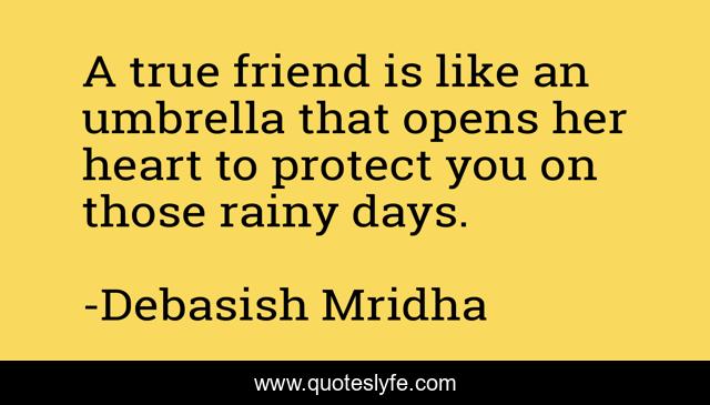"Debasish Mridha Quotes." Quoteslyfe.com, 2025. Fri. 05 Dec. 2025. <https://www.quoteslyfe.com/quote/A-true-friend-is-like-an-umbrella-206401>.