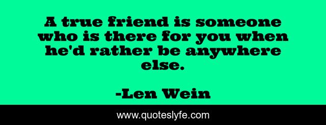 This page presents the quote "A true friend is someone who is there for you when he'd rather be anywhere else.". Author of this quote is Len Wein. This quote is about true friend, friend,.