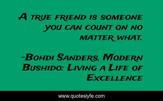 This page presents the quote "A true friend is someone you can count on no matter what.". Author of this quote is Bohdi Sanders, Modern Bushido: Living a Life of Excellence. This quote is about friendship, real-friends, true-friendship, true-friend, bohdi-sanders, real-friendship, true-friends, real-friend, friendships,.