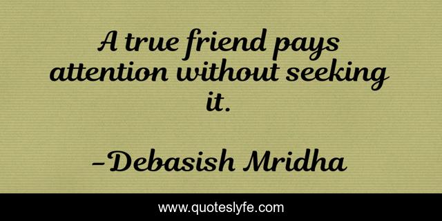 This page presents the quote "A true friend pays attention without seeking it.". Author of this quote is Debasish Mridha. This quote is about debasish, mridha, philosophy, inspirational, enthusiasm, friendship, friend,.