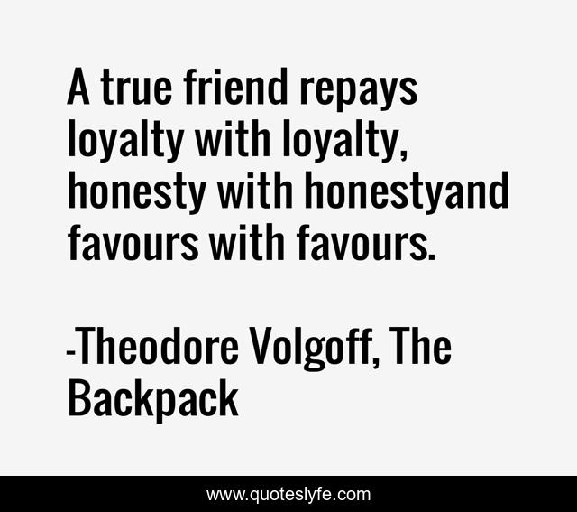 This page presents the quote "A true friend repays loyalty with loyalty, honesty with honestyand favours with favours.". Author of this quote is Theodore Volgoff, The Backpack. This quote is about favours, friend,.