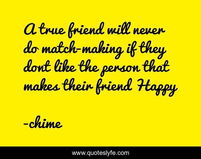 This page presents the quote "A true friend will never do match-making if they dont like the person that makes their friend Happy". Author of this quote is chime. .