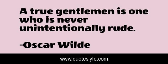 This page presents the quote "A true gentlemen is one who is never unintentionally rude.". Author of this quote is Oscar Wilde. This quote is about politeness, manners,.