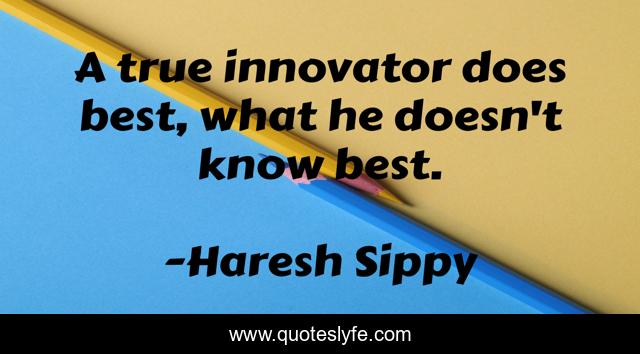 This page presents the quote "A true innovator does best, what he doesn't know best.". Author of this quote is Haresh Sippy. This quote is about technology, business, innovation,.