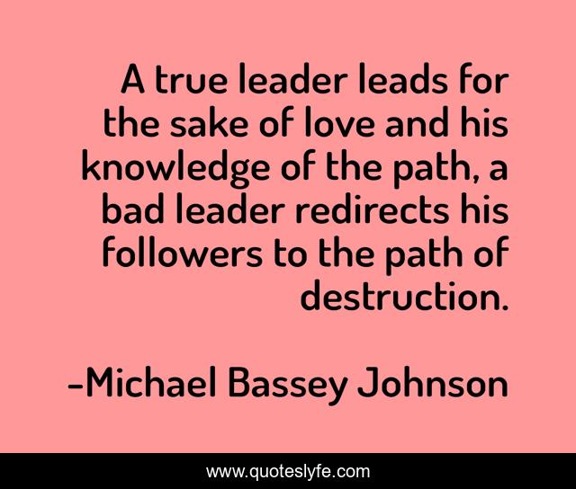 A true leader leads for the sake of love and his knowledge of the path, a bad leader redirects his followers to the path of destruction.