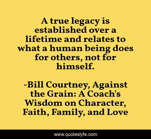 "Bill Courtney, Against the Grain: A Coach's Wisdom on Character, Faith, Family, and Love Quotes." Quoteslyfe.com, 2025. Sat. 06 Dec. 2025. <https://www.quoteslyfe.com/quote/A-true-legacy-is-established-over-a-141888>.