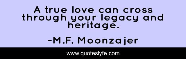 This page presents the quote "A true love can cross through your legacy and heritage.". Author of this quote is M.F. Moonzajer. This quote is about true-love, legacy, heritage,.