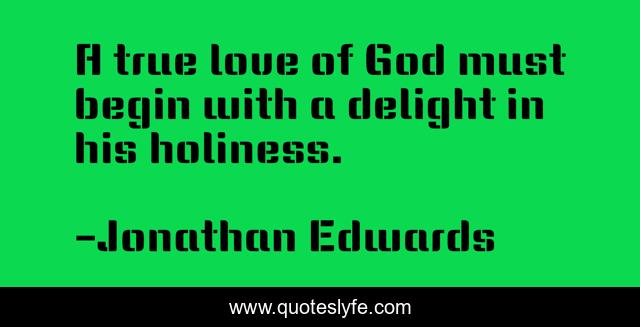 This page presents the quote "A true love of God must begin with a delight in his holiness.". Author of this quote is Jonathan Edwards. .