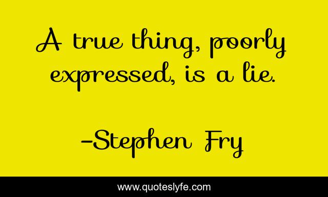 This page presents the quote "A true thing, poorly expressed, is a lie.". Author of this quote is Stephen Fry. .
