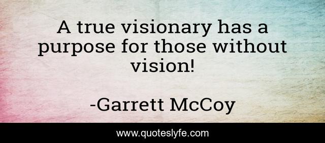 This page presents the quote "A true visionary has a purpose for those without vision!". Author of this quote is Garrett McCoy. This quote is about vision, prupose,.