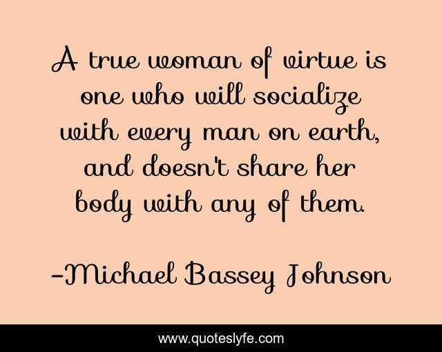 "Michael Bassey Johnson Quotes." Quoteslyfe.com, 2025. Mon. 08 Dec. 2025. <https://www.quoteslyfe.com/quote/A-true-woman-of-virtue-is-one-177387>.
