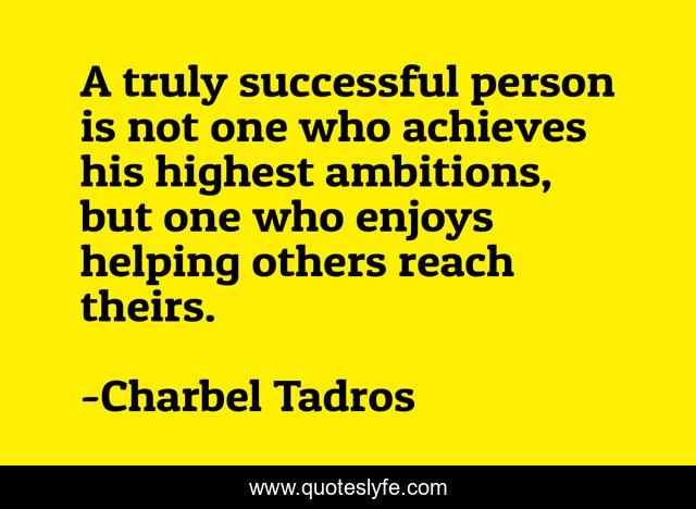 This page presents the quote "A truly successful person is not one who achieves his highest ambitions, but one who enjoys helping others reach theirs.". Author of this quote is Charbel Tadros. This quote is about true-success, ambition, successful-person, success, helping-others,.