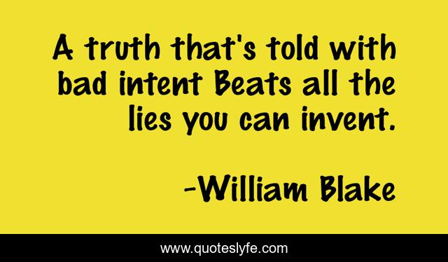 This page presents the quote "A truth that's told with bad intent Beats all the lies you can invent.". Author of this quote is William Blake. .
