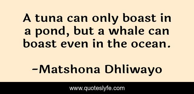 "Matshona Dhliwayo Quotes." Quoteslyfe.com, 2025. Fri. 05 Dec. 2025. <https://www.quoteslyfe.com/quote/A-tuna-can-only-boast-in-a-189959>.