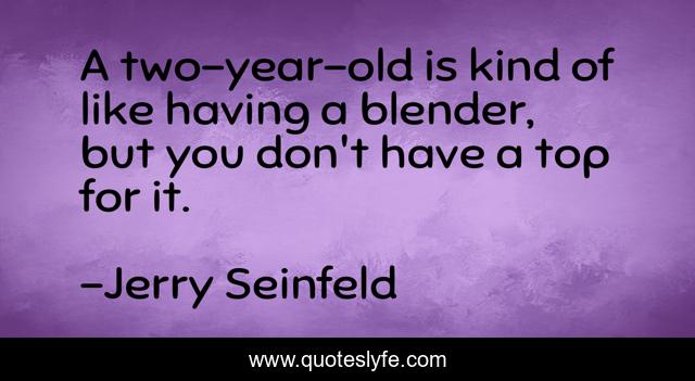 This page presents the quote "A two-year-old is kind of like having a blender, but you don't have a top for it.". Author of this quote is Jerry Seinfeld. This quote is about kind, like,.