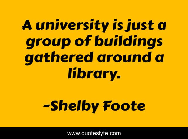 This page presents the quote "A university is just a group of buildings gathered around a library.". Author of this quote is Shelby Foote. This quote is about university, college, library,.