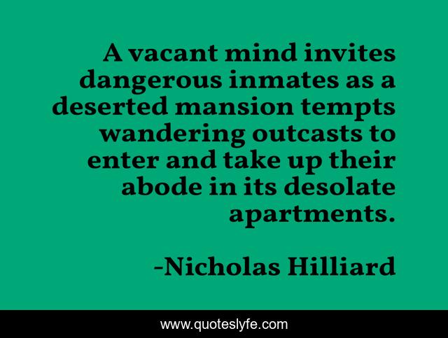 This page presents the quote "A vacant mind invites dangerous inmates as a deserted mansion tempts wandering outcasts to enter and take up their abode in its desolate apartments.". Author of this quote is Nicholas Hilliard. This quote is about positive, confidence,.