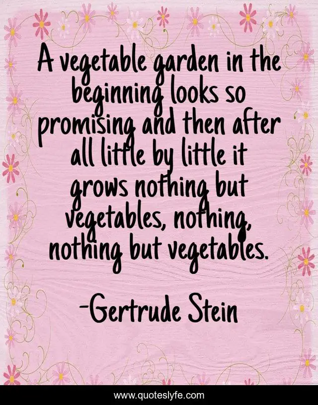 "Gertrude Stein Quotes." Quoteslyfe.com, 2025. Tue. 09 Dec. 2025. <https://www.quoteslyfe.com/quote/A-vegetable-garden-in-the-beginning-looks-316131>.