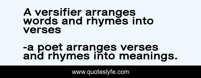 "a poet arranges verses and rhymes into meanings. Quotes." Quoteslyfe.com, 2025. Fri. 05 Dec. 2025. <https://www.quoteslyfe.com/quote/A-versifier-arranges-words-and-rhymes-into-112723>.