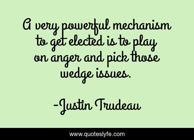 This page presents the quote "A very powerful mechanism to get elected is to play on anger and pick those wedge issues.". Author of this quote is Justin Trudeau. This quote is about play, powerful, issues,.