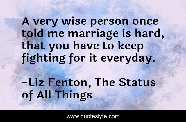 This page presents the quote "A very wise person once told me marriage is hard, that you have to keep fighting for it everyday.". Author of this quote is Liz Fenton, The Status of All Things. .