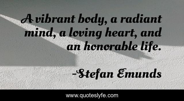 This page presents the quote "A vibrant body, a radiant mind, a loving heart, and an honorable life.". Author of this quote is Stefan Emunds. This quote is about heart, life, love, psychology, positive, motivational, soul, wisdom, peace-of-mind,.