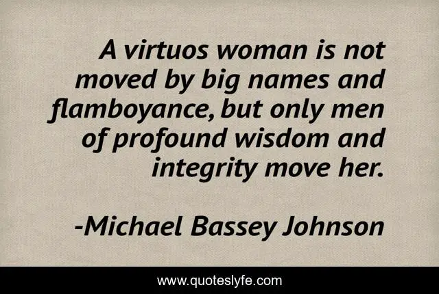 "Michael Bassey Johnson Quotes." Quoteslyfe.com, 2025. Fri. 05 Dec. 2025. <https://www.quoteslyfe.com/quote/A-virtuos-woman-is-not-moved-by-12625>.