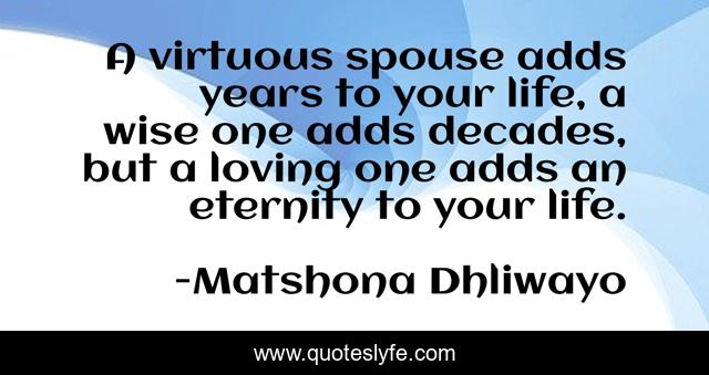 "Matshona Dhliwayo Quotes." Quoteslyfe.com, 2025. Mon. 08 Dec. 2025. <https://www.quoteslyfe.com/quote/A-virtuous-spouse-adds-years-to-your-58080>.