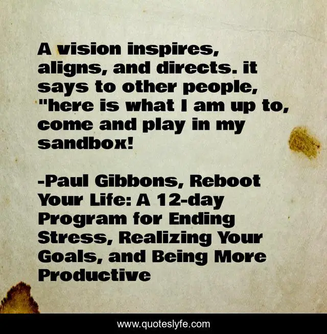 "Paul Gibbons, Reboot Your Life: A 12-day Program for Ending Stress, Realizing Your Goals, and Being More Productive Quotes." Quoteslyfe.com, 2025. Fri. 05 Dec. 2025. <https://www.quoteslyfe.com/quote/A-vision-inspires-aligns-and-directs-it-146837>.
